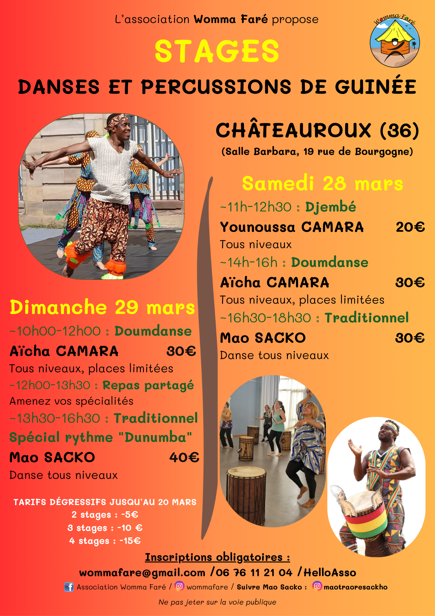 - 2 stages de danse traditionnelle de Guinée