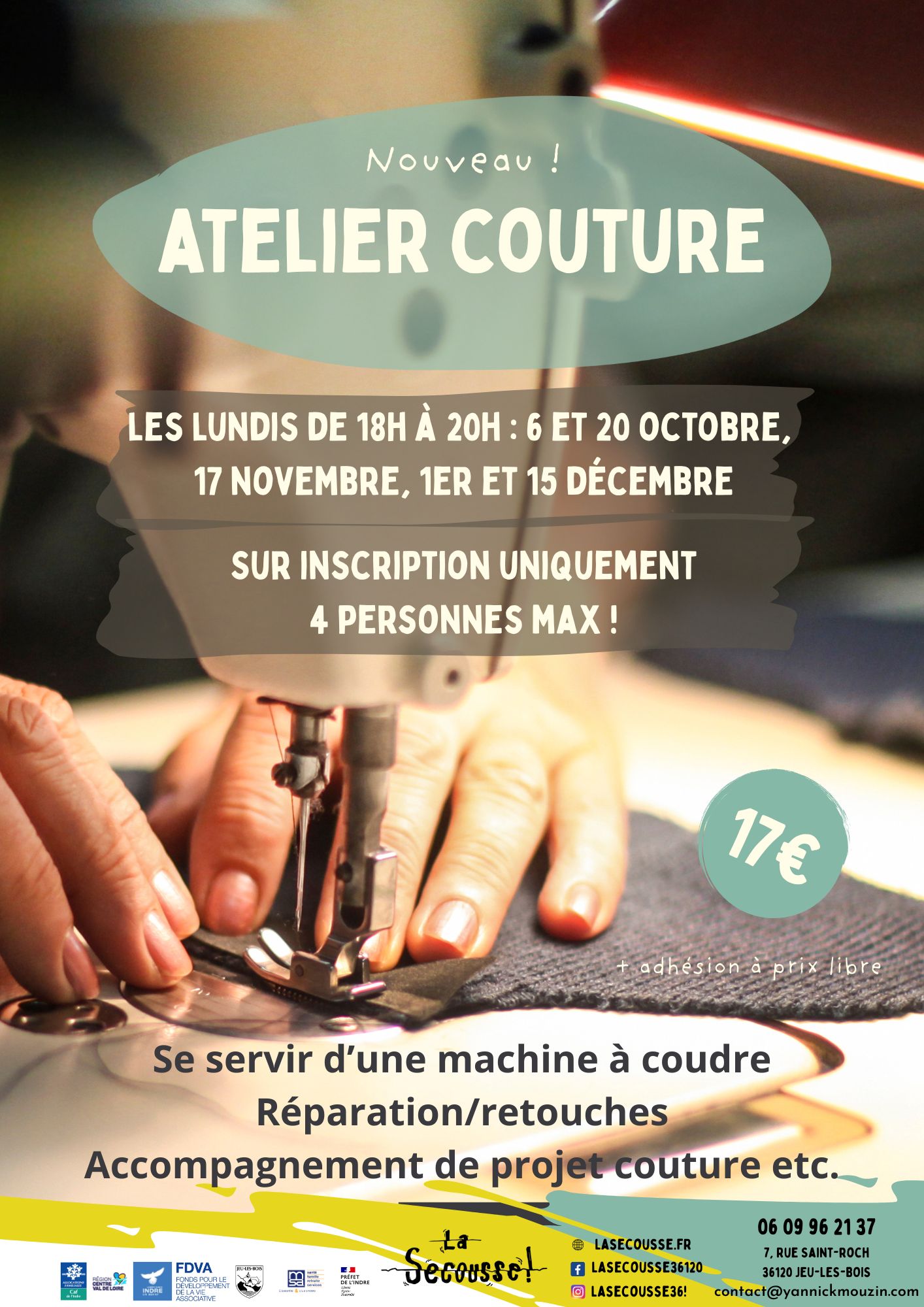 Jusqu'au mois de décembre, un ou deux lundis par mois, La Secousse propose plusieurs ateliers couture avec une professionnelle.