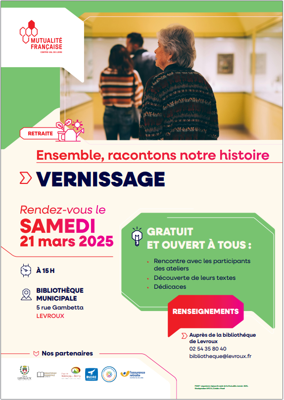 La bibliothèque de Levroux vous convie au vernissage du projet d'ateliers d'écriture "Ensemble, racontons notre histoire".