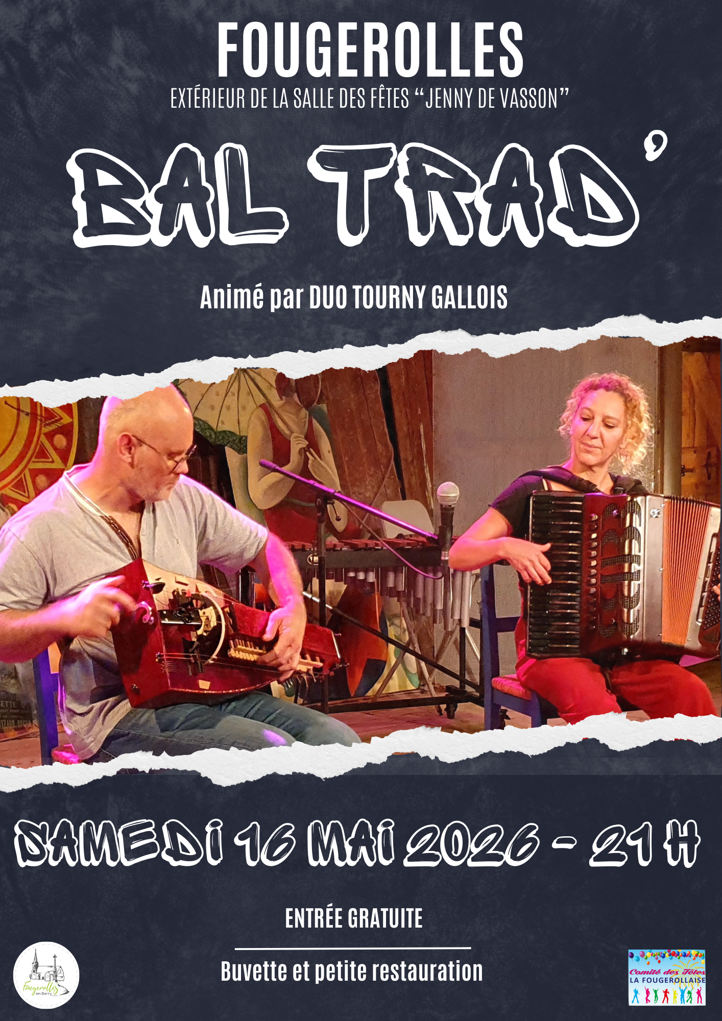 Venez nombreux à ce bal trad printanier organisé par la commune de Fougerolles, avec le groupe Duo Tourny Gallois !