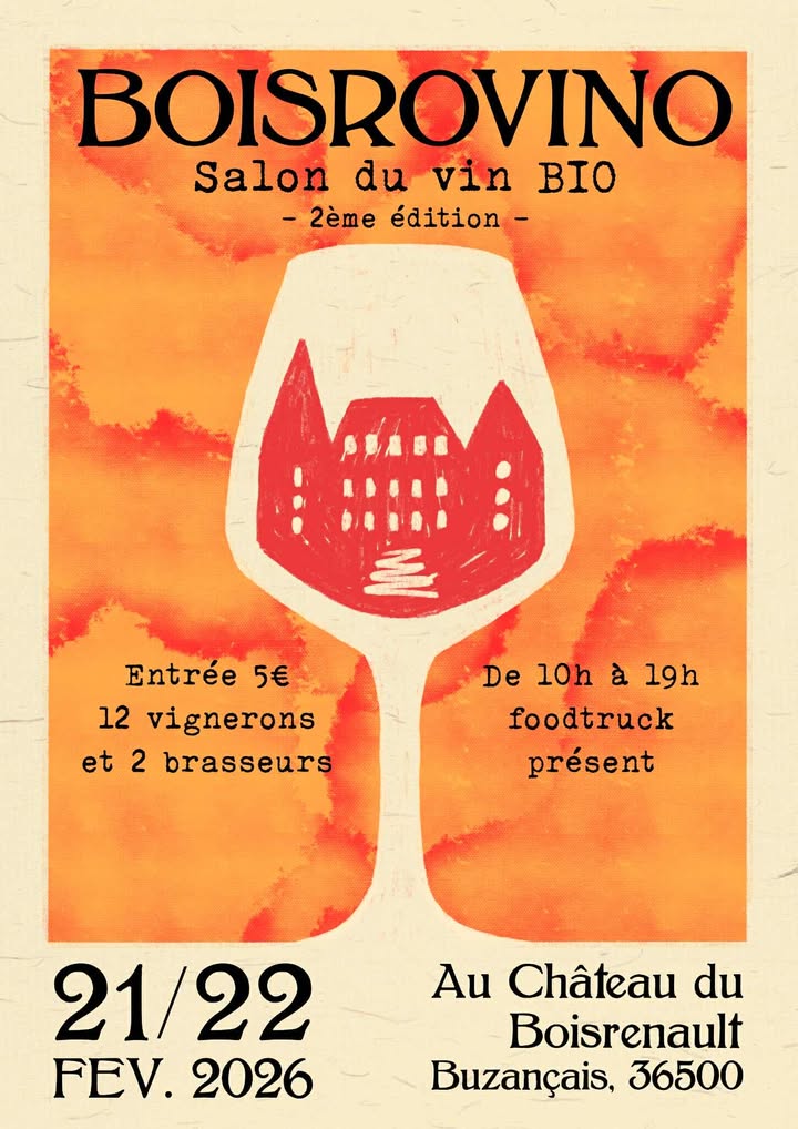 Venez découvrir des producteurs de vins bio venant de toute la France : de l'Alsace, en passant par la Bretagne, la Bourgogne, la Loire, le Beaujolais, jusqu'au Languedoc-Roussillon et la Vallée du Rhône ! Une diversité de producteurs, de goûts et de prix, dans un endroit magnifique et chaleureux : le château du Boisrenault, à Buzançais.