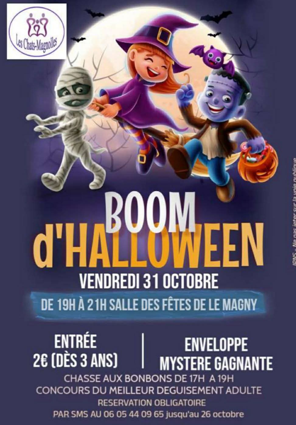 Chasse aux bonbons de 17h à 19h dans les rues de Le Magny, suivie d'une boom à la salle des fêtes jusqu'à 21h.