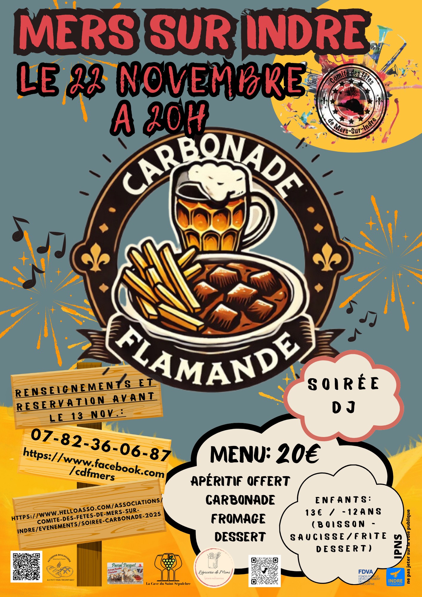 Tarifs : Menu 20€ : apéritif, carbonade, fromage et dessert