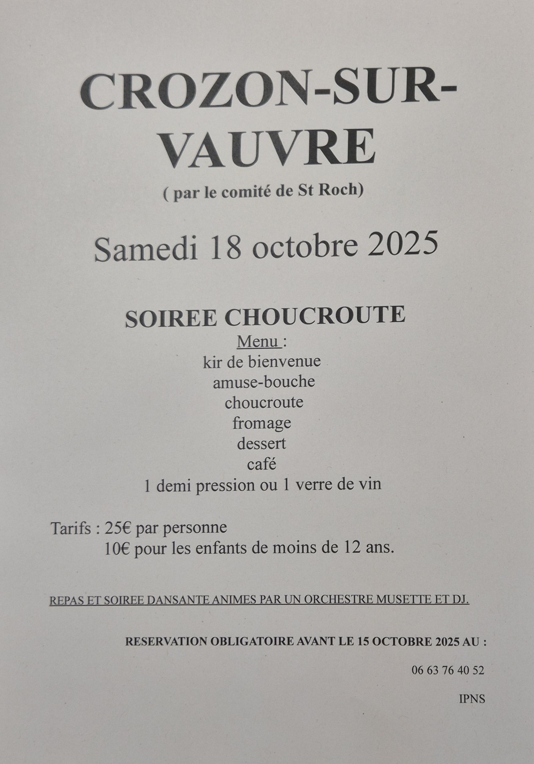 Soirée choucroute du Comité de Saint-Roch de Crozon-sur-Vauvre.