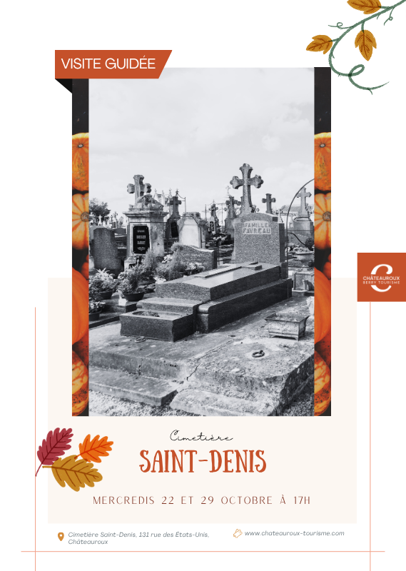Le cimetière Saint-Denis, le plus ancien de Châteauroux, offre un parcours entre mémoire et histoire locale. Cette visite guidée permet d'aborder l'évolution des pratiques funéraires, de lire les symboles gravés dans la pierre et d'évoquer les figures marquantes qui y reposent : Ernest Nivet, Maurice Rollinat, Paul Rue, etc. Un lieu de silence, de transmission et de patrimoine à découvrir au cours de cette visite guidée.