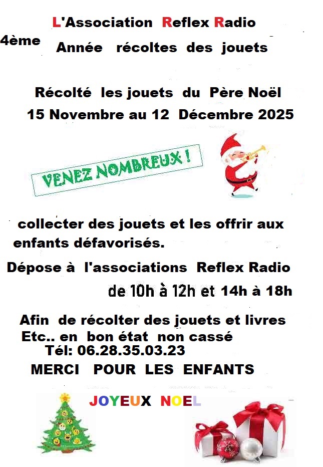 Récolte de jouets / livres, … pour les enfants qui n'ont pas de jouets pour Noël. Tous les jouets récoltés seront distribués aux enfants.
