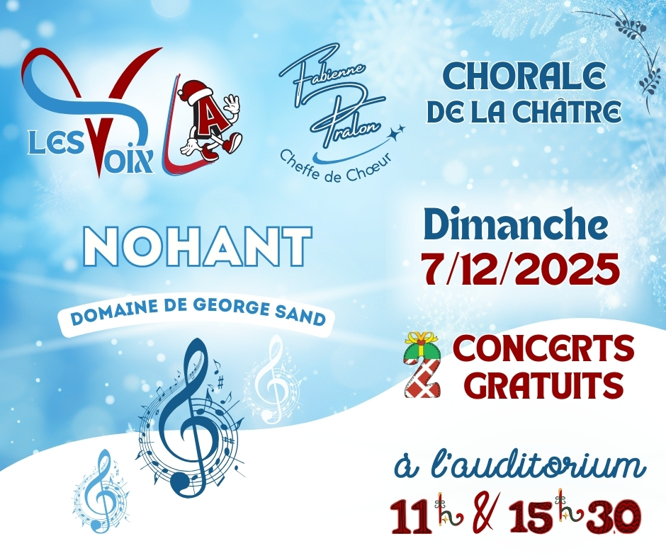 Le 7 décembre à 11h et 15h30, « Les Voix Là ! » : chorale  de 35 choristes amateurs passionnés, dirigée par Fabienne Pralon cheffe de chœur, alliant exigence et belle humeur !