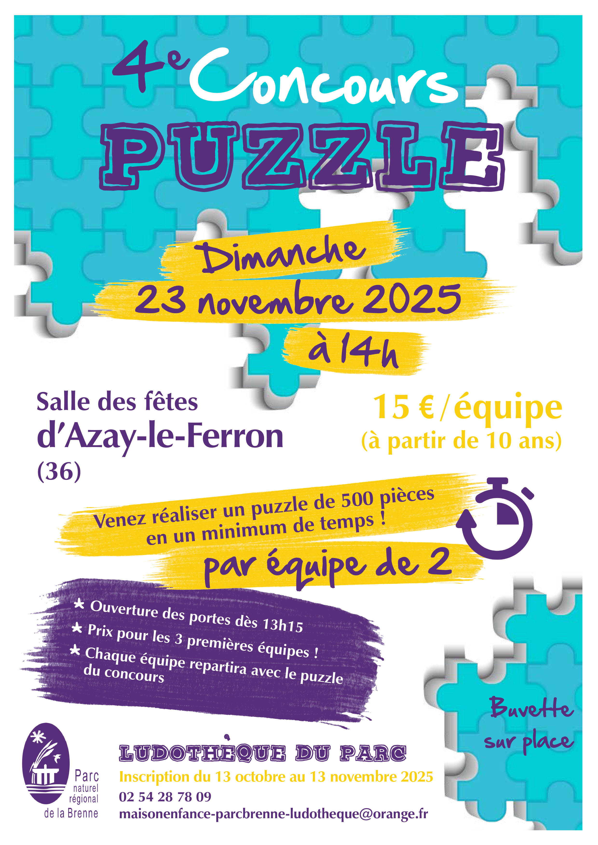 Nous déclarons les inscriptions au 4ème concours puzzle de la ludothèque du Parc de la Brenne ouvertes ! Le principe : résoudre un puzzle de 500 pièces en 3h.