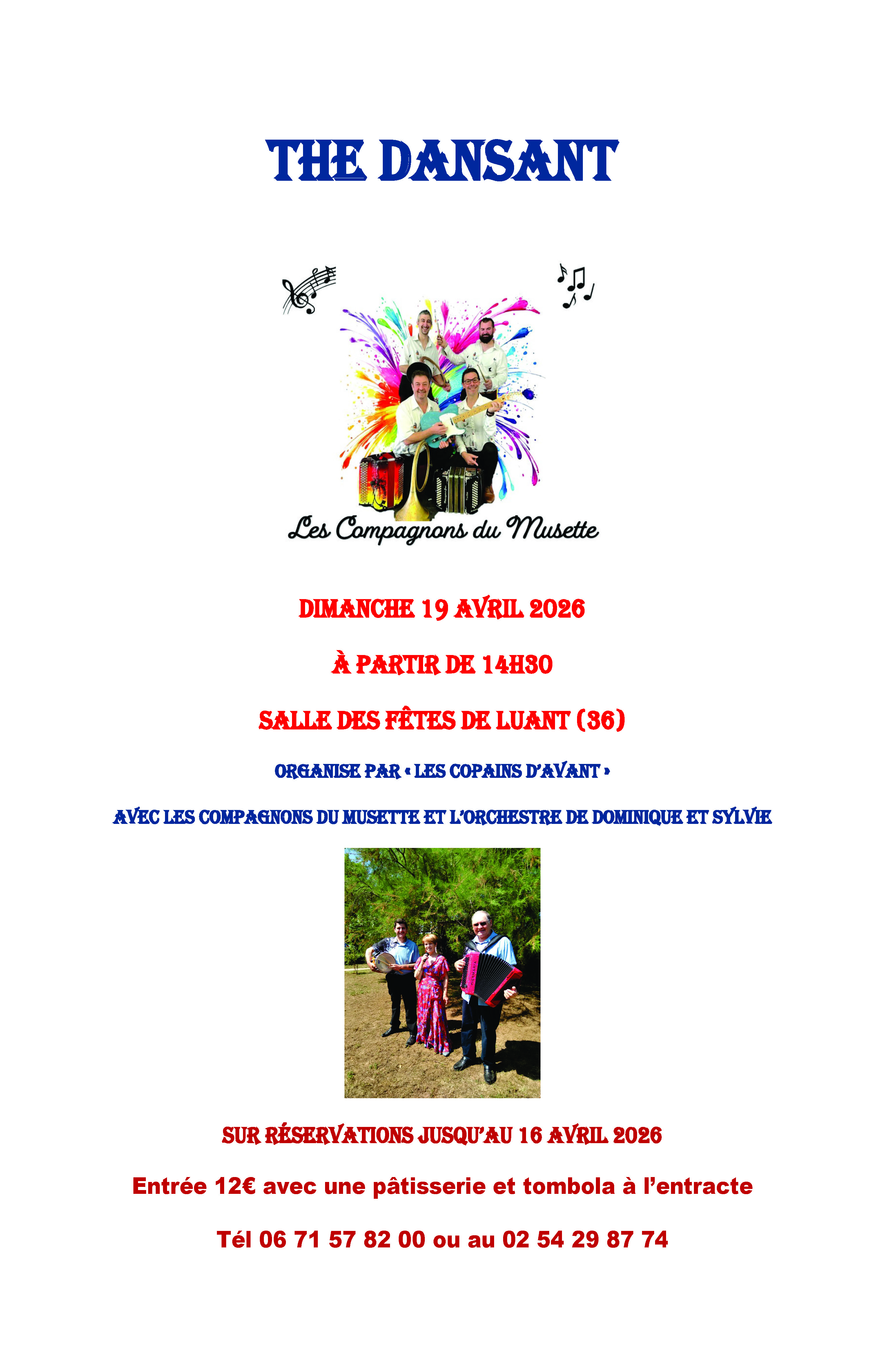 Thé dansant organisé par "Les Copains d'Avant" avec l'orchestre des Compagnons du Musette et l'orchestre de Dominique Paillault avec une pâtisserie et tombola à l'entracte.