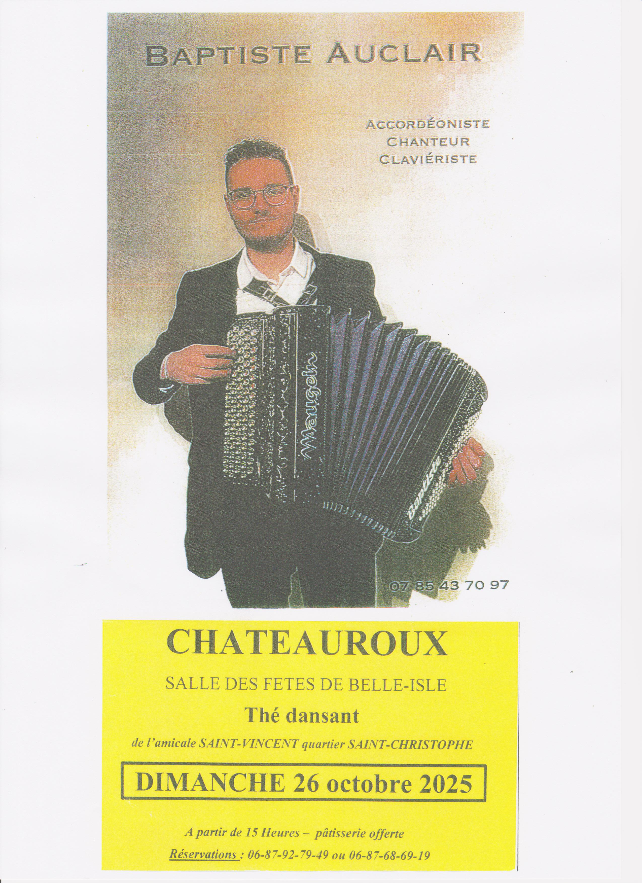 L'amicale Saint-Vincent Saint-Christophe organise son thé dansant, animé par Baptiste Auclair.