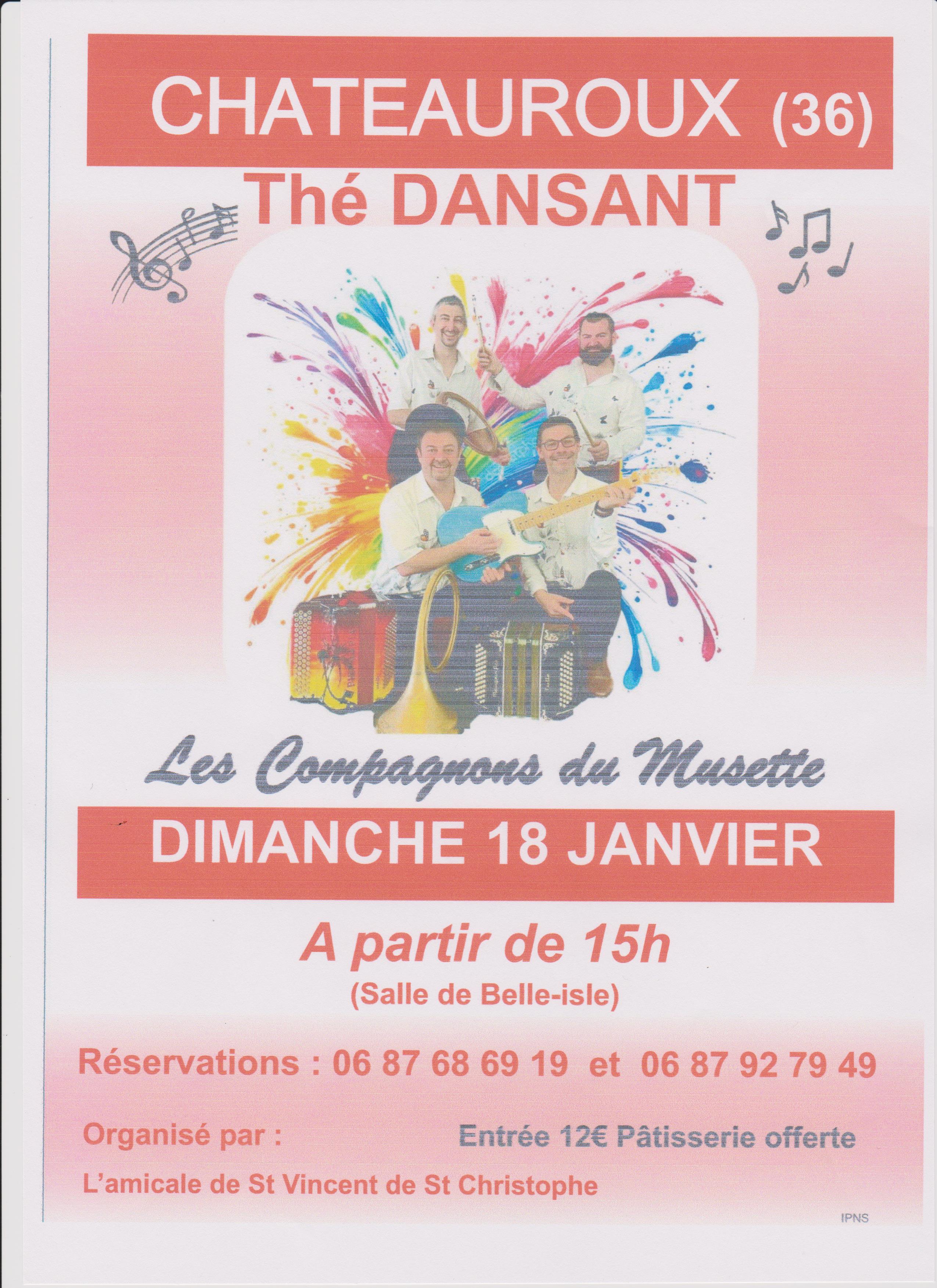 15h : thé dansant animé par Les compagnons du musette. Pâtisserie offerte.