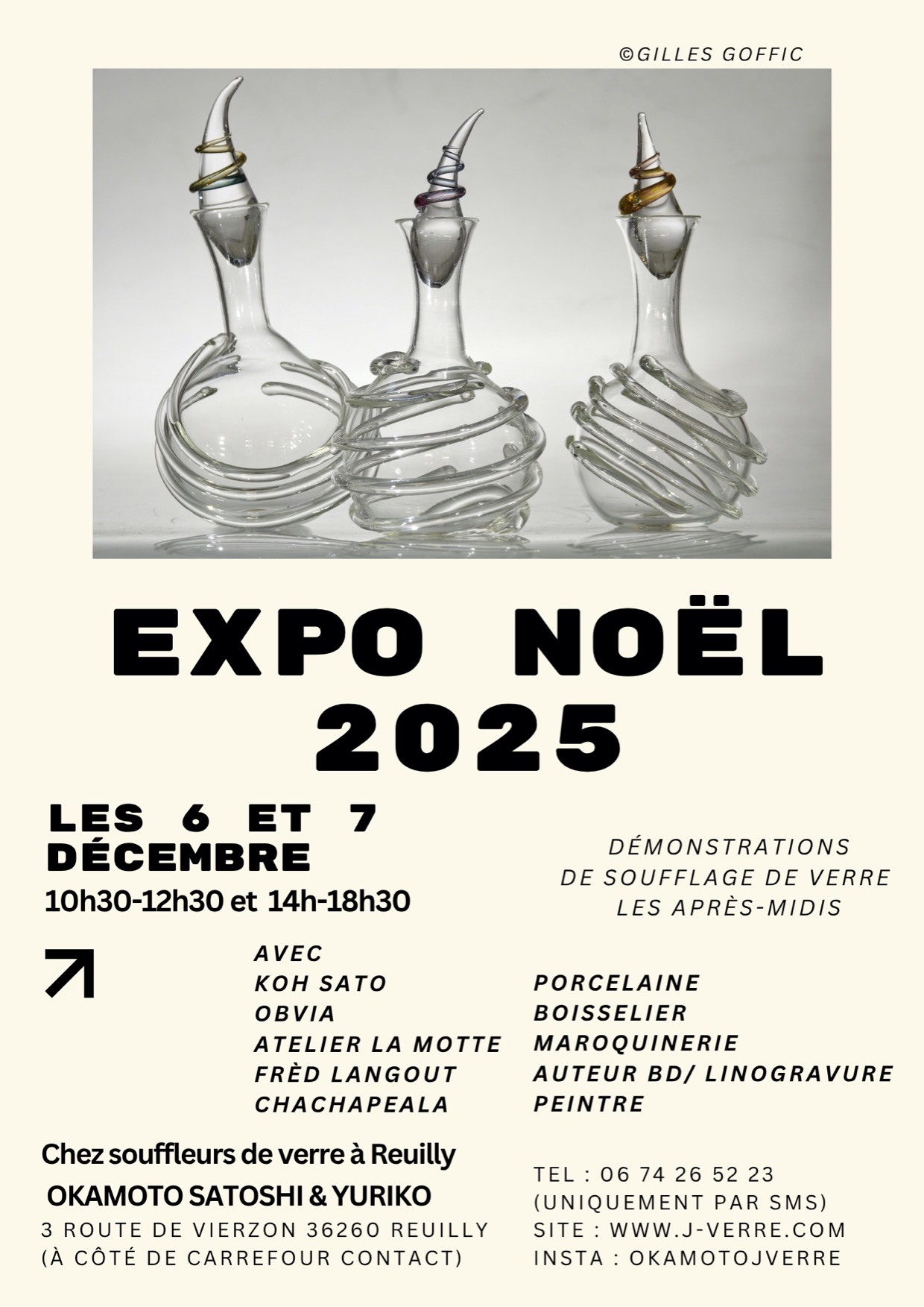 Dans notre atelier de soufflage de verre, nous organisons l'Expo Noël comme chaque année, avec 5 artisans d'Art invités.