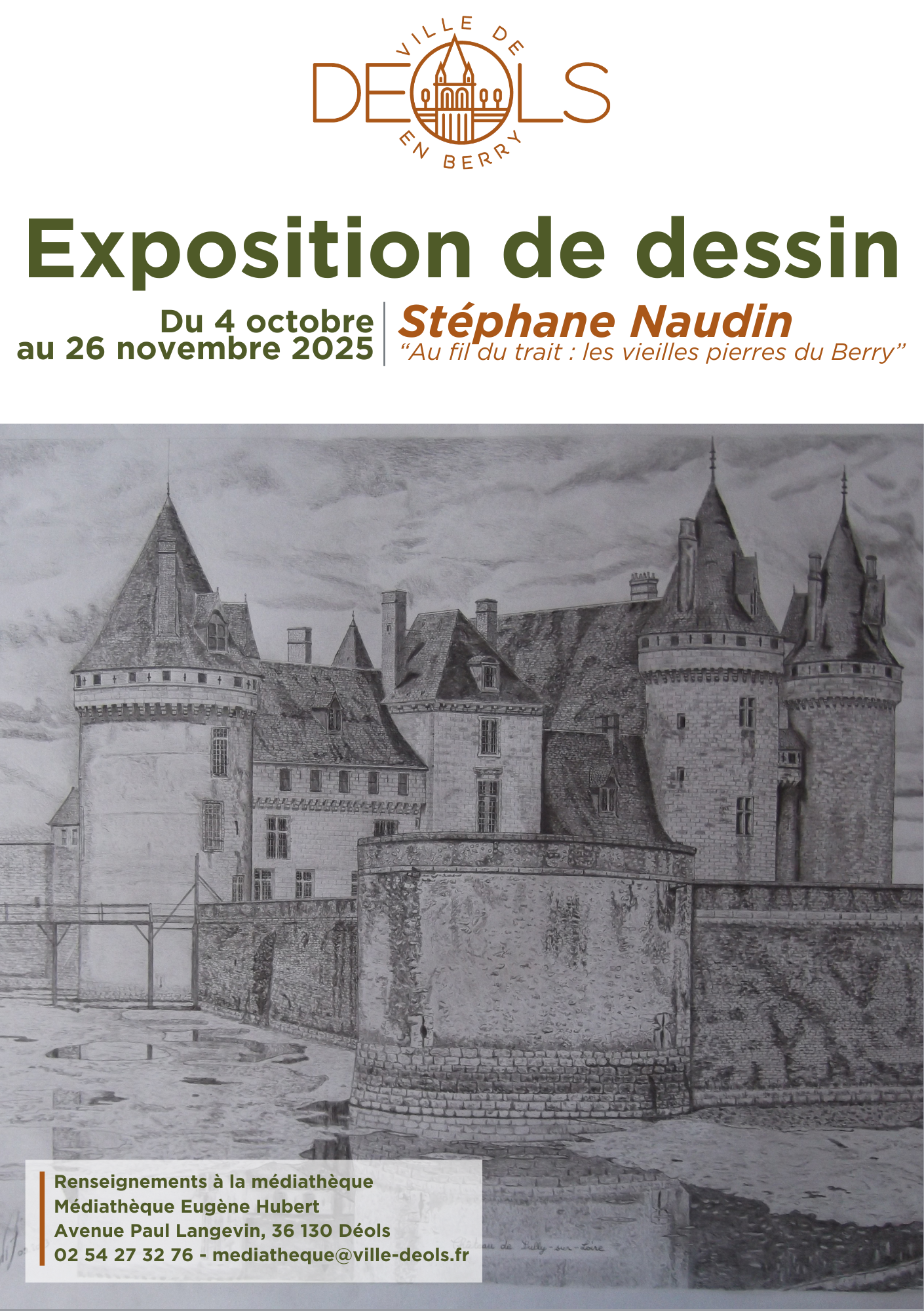 Exposition de dessins par Stéphane Naudin « Au fil du trait : les vielles pierre du Berry » : du 4 octobre au 26 novembre.