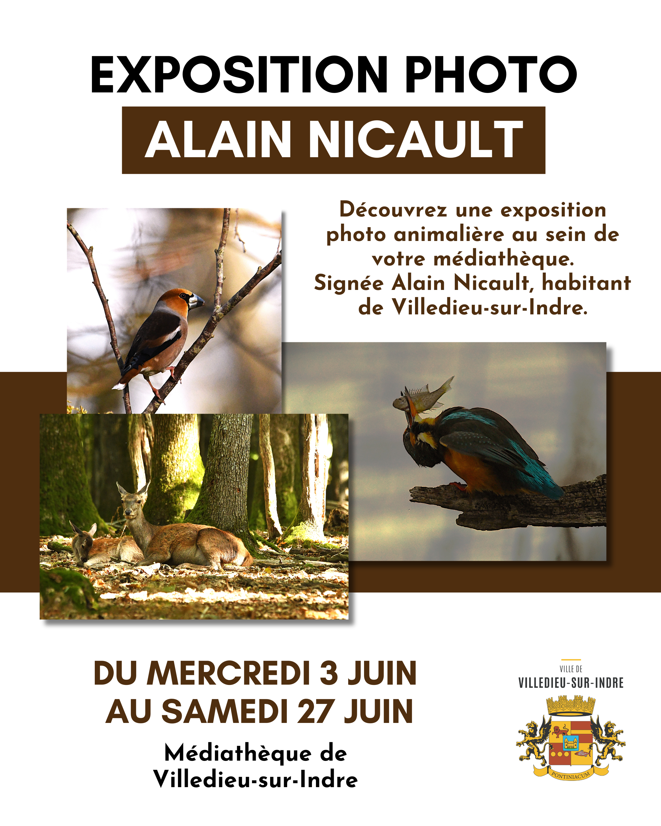 La médiathèque de Villedieu-sur-Indre vous invite à découvrir une exposition photo animalière signée Alain Nicault, habitant de la commune.