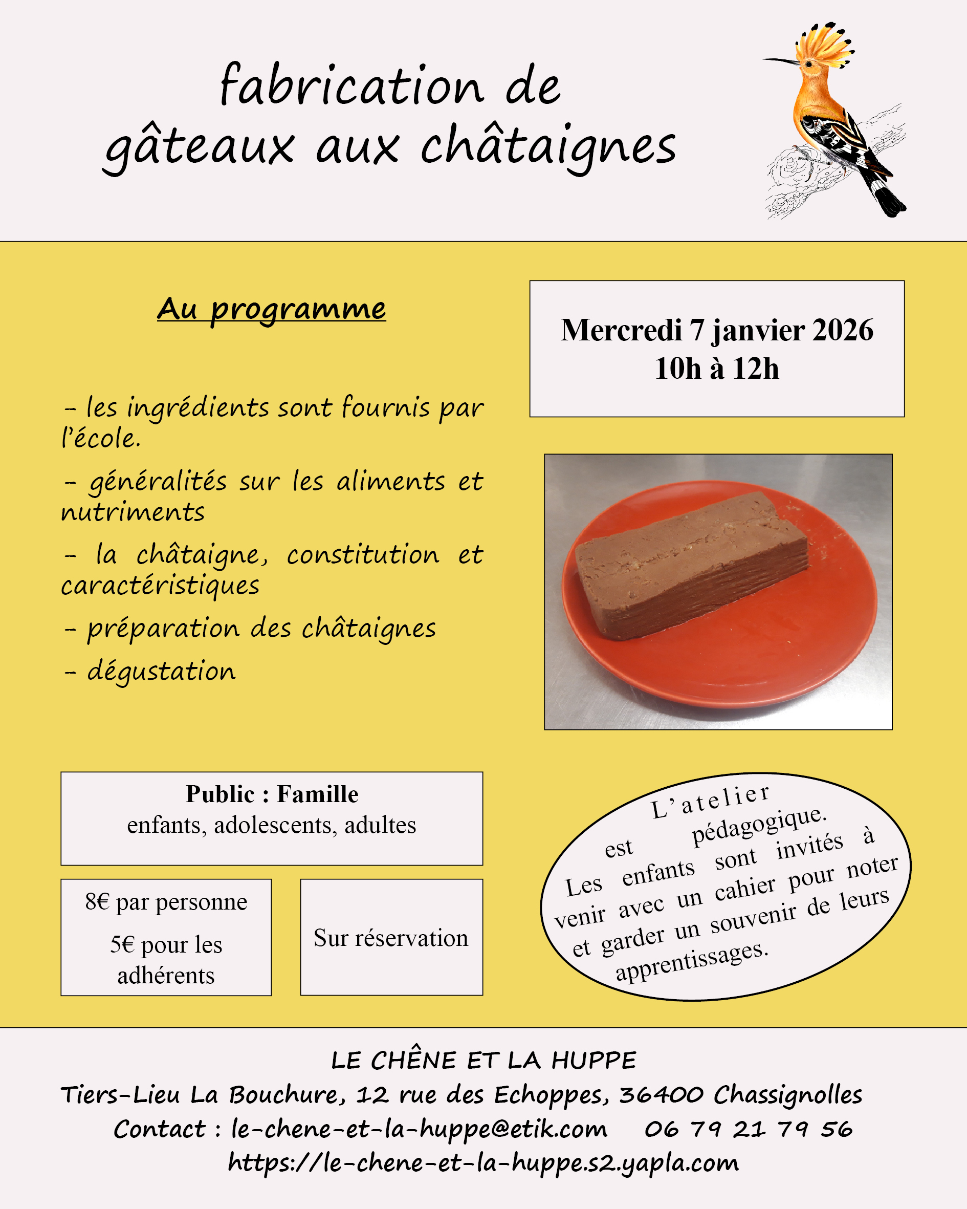 C'est un atelier pédagogique. Les enfants sont invités à venir avec un cahier pour noter et garder un souvenir de leurs apprentissages.