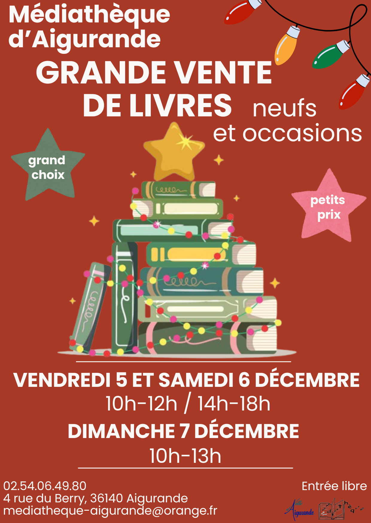 Grande vente exceptionnelle de livres neufs et d'occasion les vendredi 5 et samedi 6 décembre 2025 de 10h à 12h et de 14h à 18h. Ainsi que le dimanche 7 décembre 2025 de 10h à 13h.