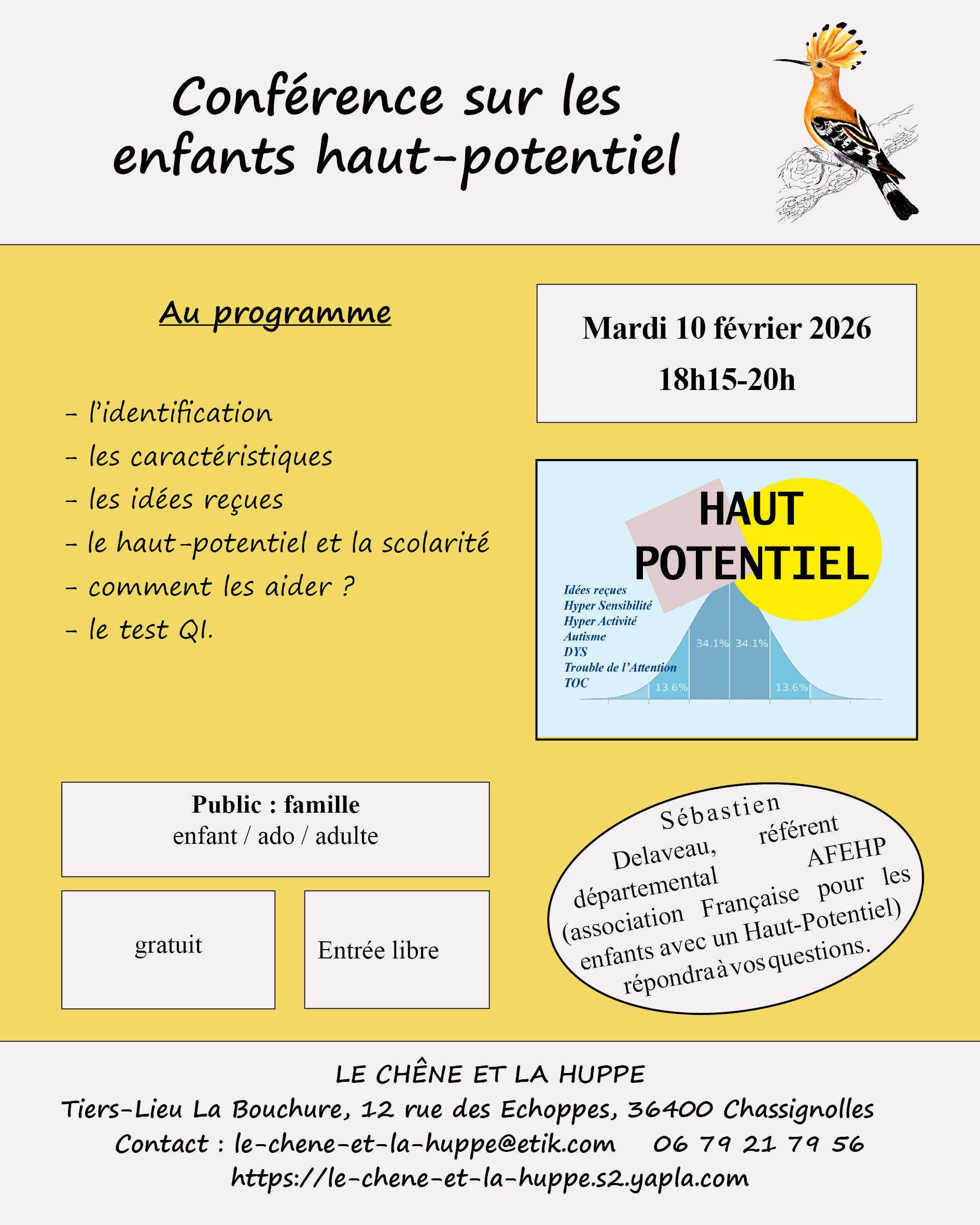 Sébastien Delaveau, référent départemental AFEHP (Association Française pour les Enfants Haut Potentiel) dans l'Indre, répondra à vos questions si vos enfants ou vous-même êtes concernés.