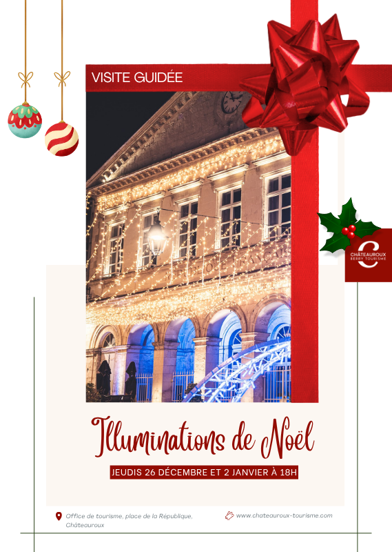 Il était une fois… Noël à Châteauroux ! Laissez-vous séduire par la magie des fêtes au cours d’une visite qui vous invitera à parcourir nos plus jolies ruelles illuminées et découvrir les origines et traditions de Noël. Un moment féerique qui vous permettra de profiter d’un instant gourmand autour d’une boisson chaude.