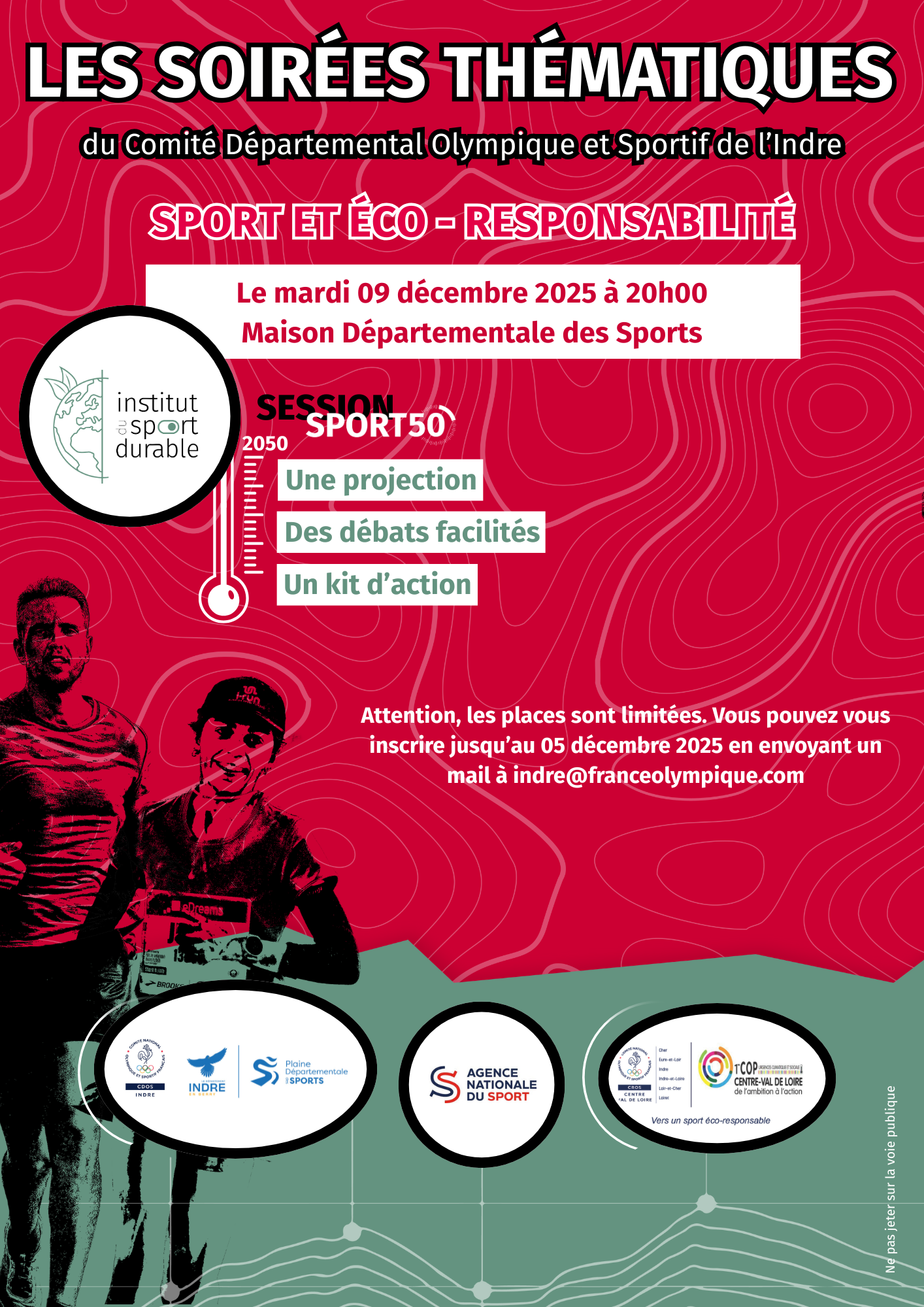 Pour la dernière soirée thématique de l'année, qui se déroulera le mardi 9 décembre à 20h à la Maison Départementale des Sports, le Comité a décidé de se concentrer sur l'éco-responsabilité dans le domaine du sport.