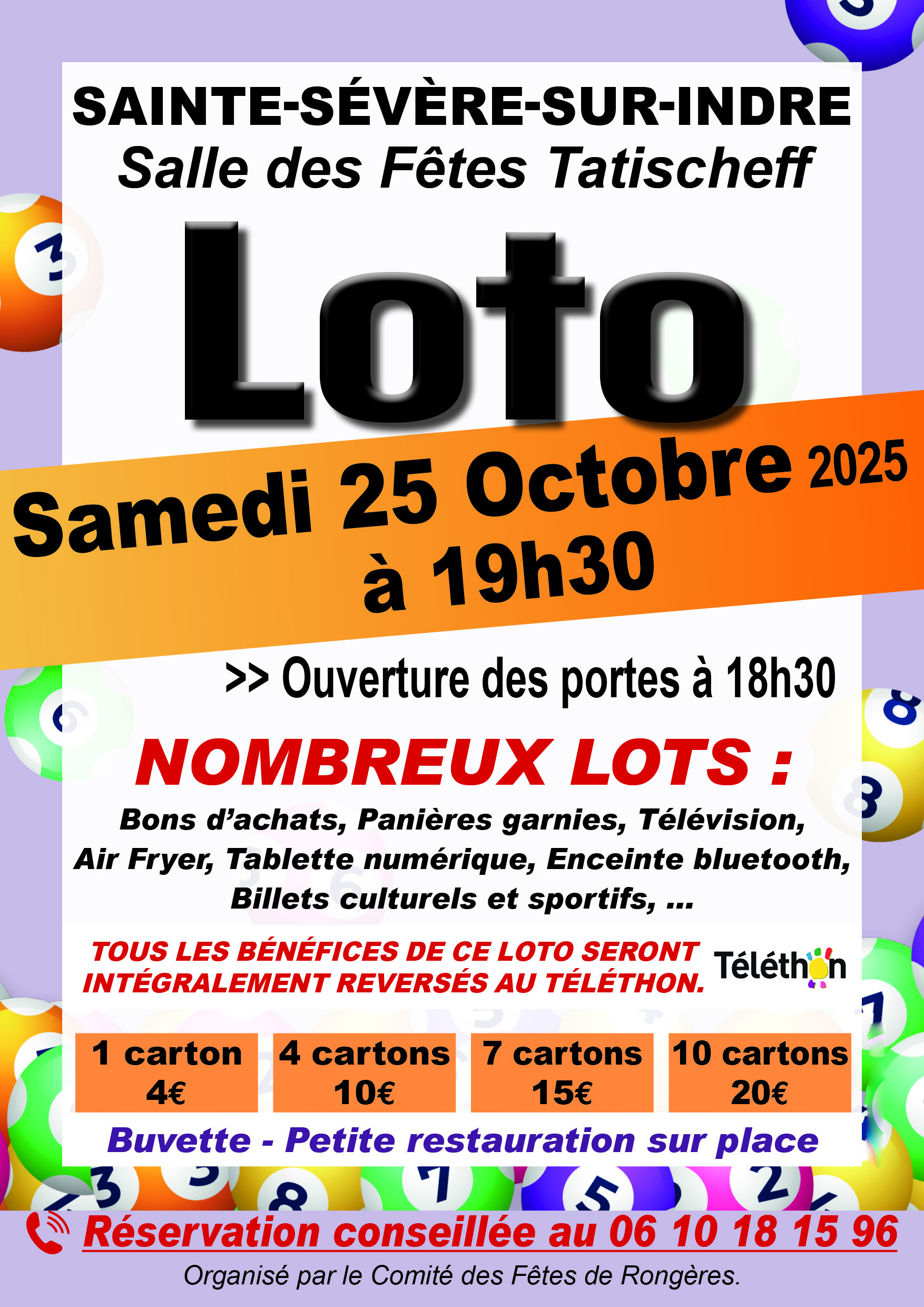 Ouverture des portes à 18h30, début du loto : 19h30