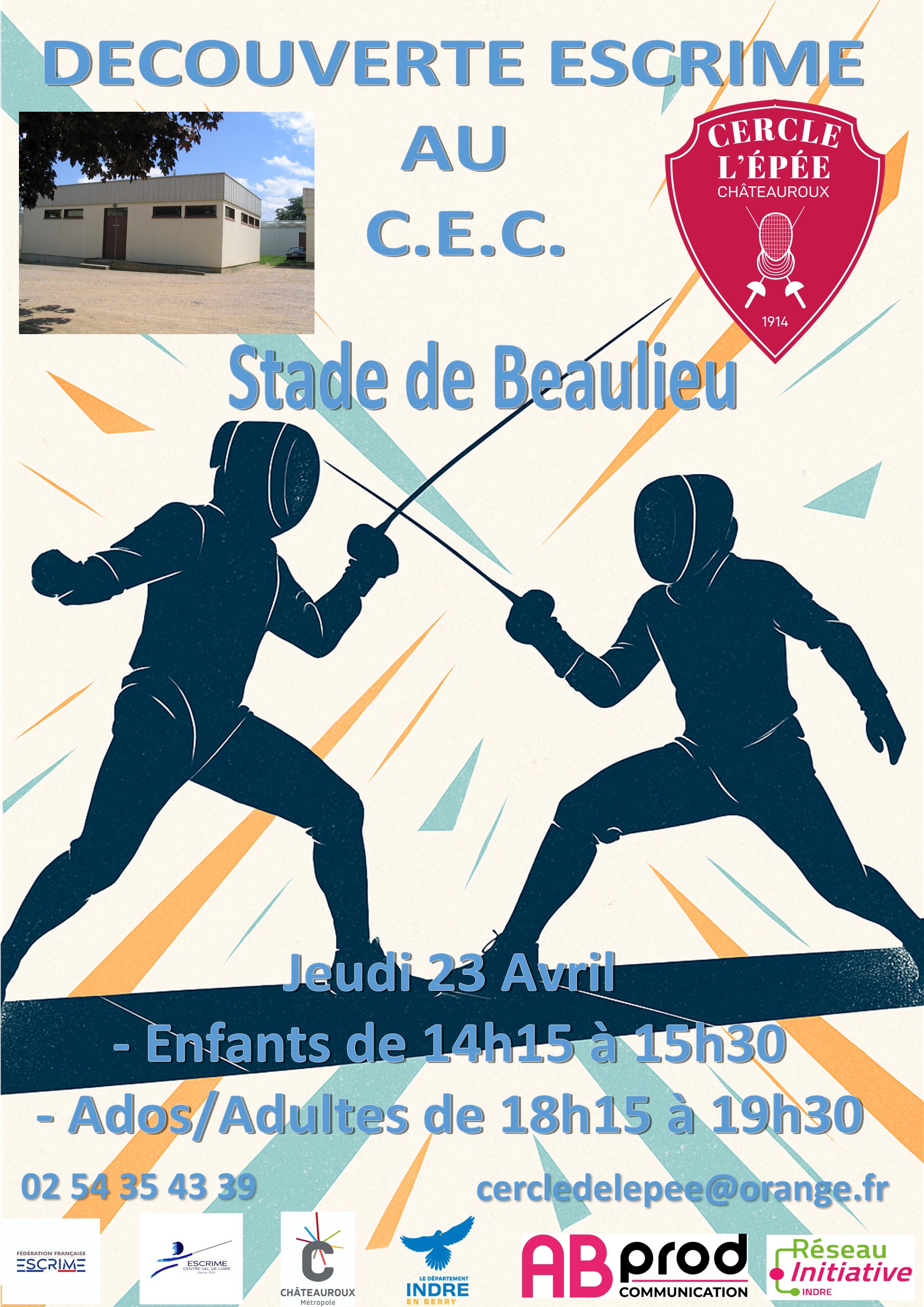 Le Cercle de l'épée de Châteauroux organise une "porte ouverte escrime" le jeudi 23 avril dans sa salle d'armes du stade de Beaulieu durant ces vacances scolaires.