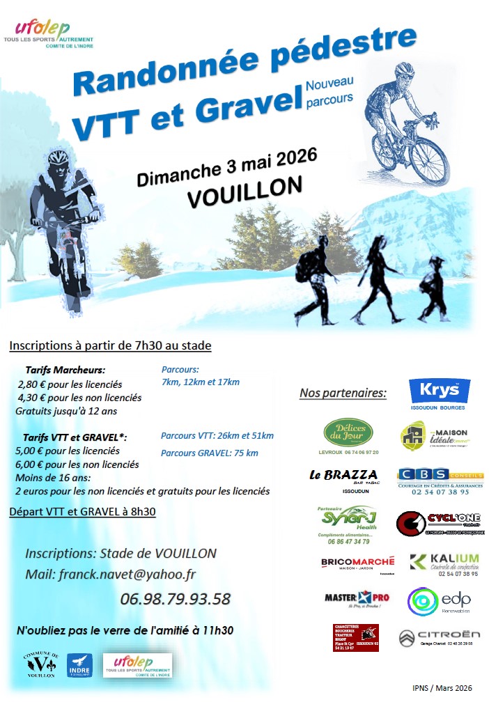 Inscriptions dès 7h30 au stade - Départ VTT & Gravel à 8h30.