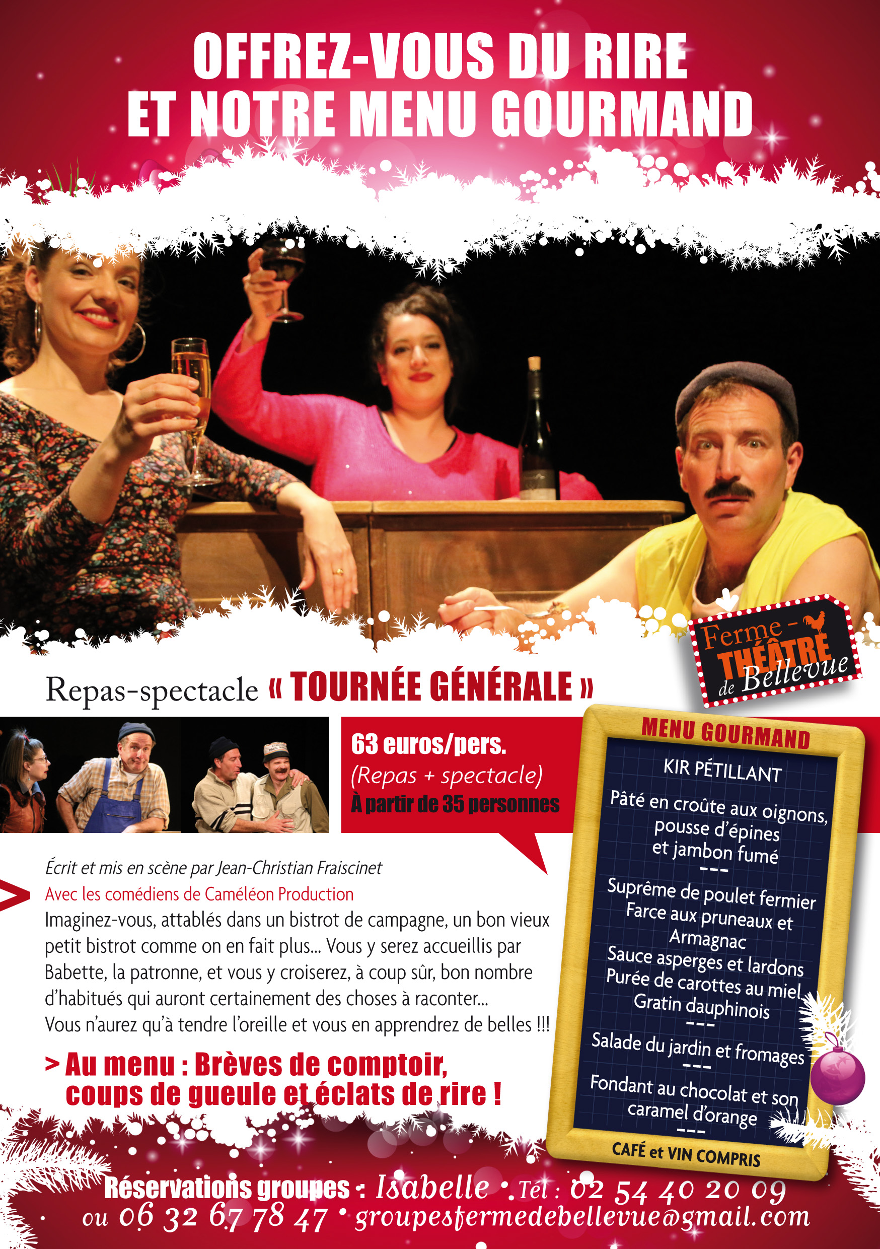 Tarifs : REPAS + SPECTACLE :