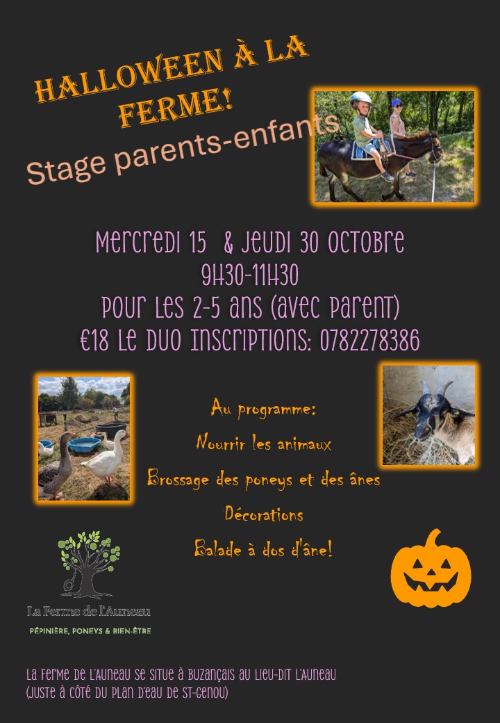 Viens fêter Halloween à la Ferme ! Ce stage est parfait pour les enfants qui souhaitent découvrir petits et grands animaux en toute sécurité, accompagné de leur parent.