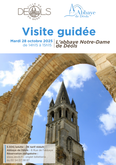 Visite guidée de l'Abbaye Notre-Dame de Déols. (Prévoir vêtements adaptés en cas de pluie car visite intérieure et extérieure le long de l'ancienne nef).
