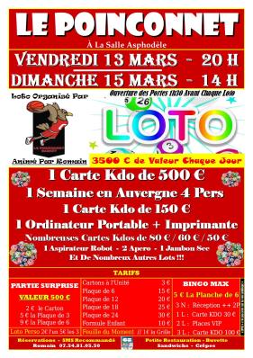 Loto annuel du Poinçonnet basket Loto Lieu : Le Poinçonnet Autres dates Du 13 mars 2026 au au 15 mars 2026