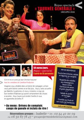 Repas-spectacle "TOURNÉE GÉNÉRALE" Théâtre, Humour Lieu : Villentrois-Faverolles-en-Berry Autres dates Du 13 mars 2026 au au 30 septembre 2026