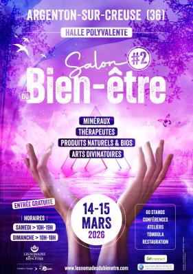2e édition du salon du bien-être Exposition, Forum & salon Lieu : Argenton-sur-Creuse Du 14 mars 2026 au au 15 mars 2026